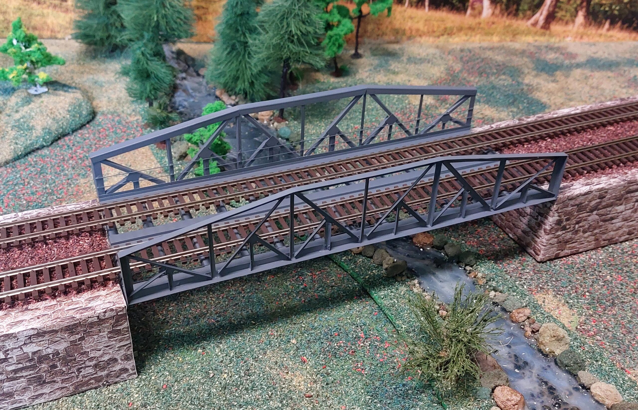 Most kratowy H0, 300 mm na 2 tory , wykonany z metalu. Długość: 300 mm, szerokość: 115 mm, wysokość: 59 mm.